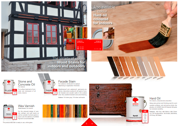 屋内の木製天井や壁材、家具部品のカラー仕上げに適しています。LEINOS ピグメント濃縮液 668 を加えることで着色可能。